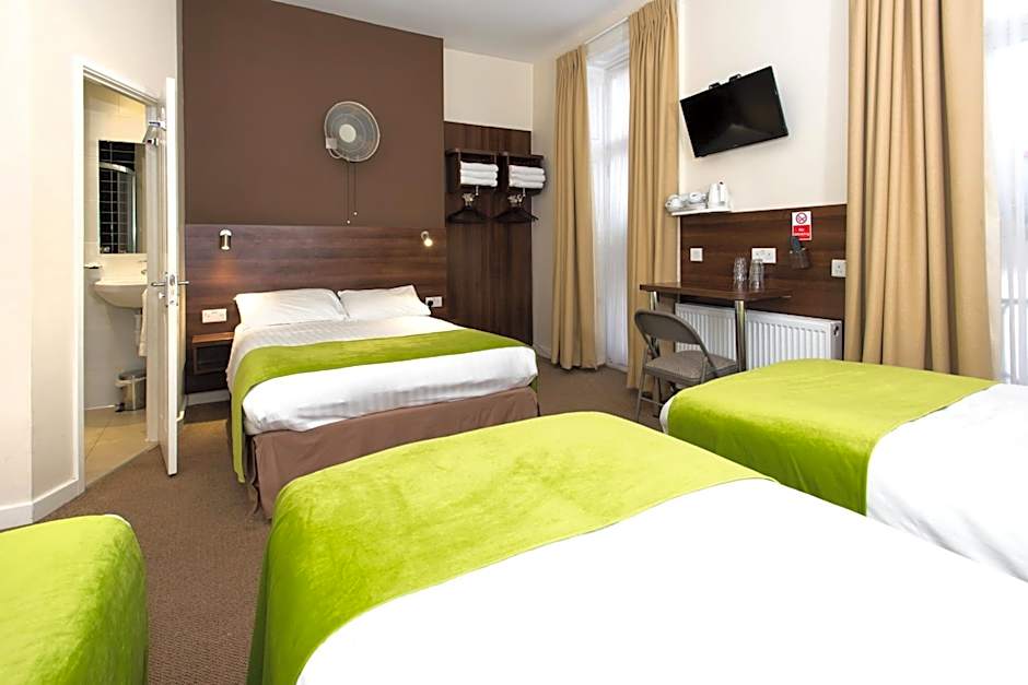 A satellite TV, hairdryer and a fan are included in this room with attached bathroom. Tea and coffee making facilities are also provided.